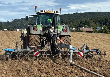 Neu bieten wir auch Gülleeindrillen und Güllegrubbern in einem Arbeitsgang an, sowie Schleppschuh.